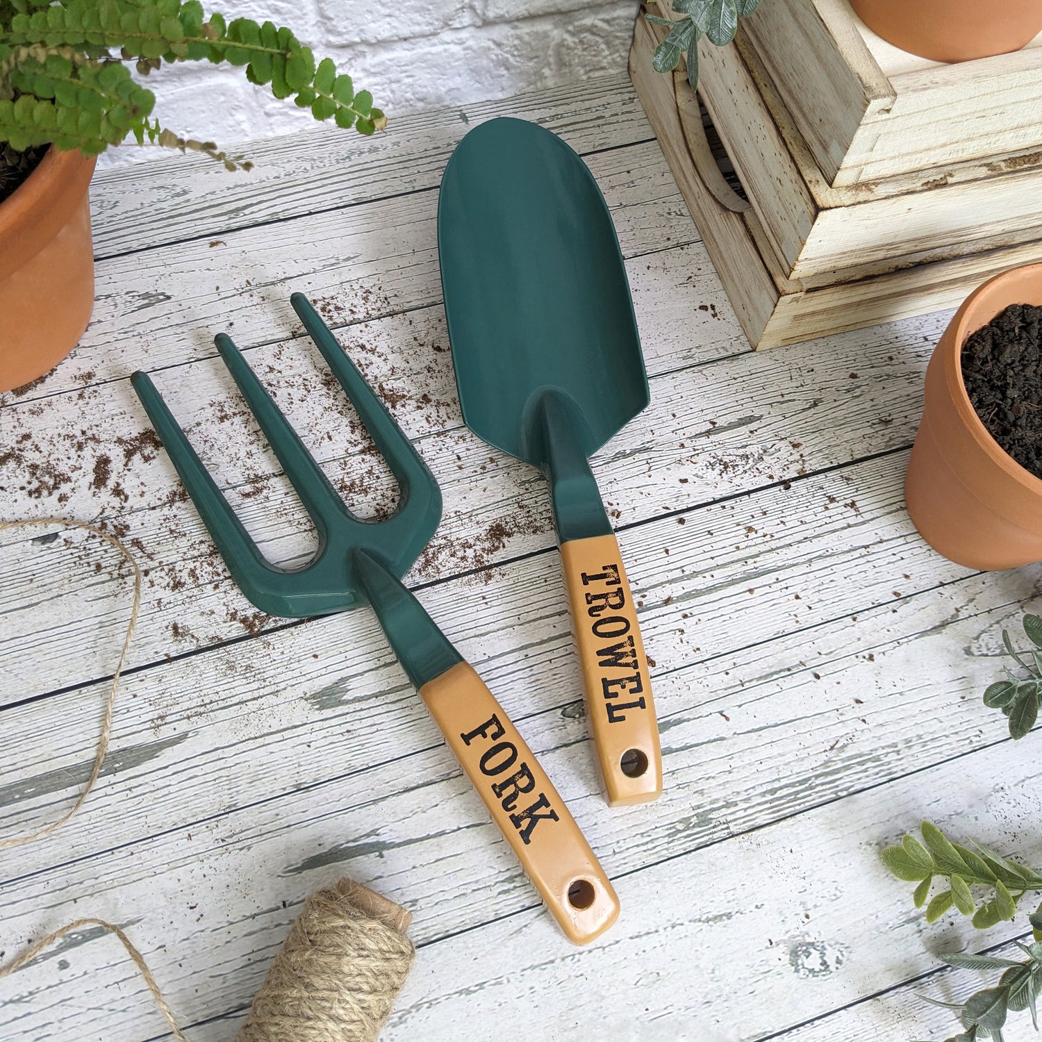 FORK AND TROWEL SET: Our small Garden Tool Set is perfect for your gardening requirements. Whether you are planting flowers, tending to herbs, or maintaining a vegetable patch, these tools are versatile and reliable for various gardening tasks.