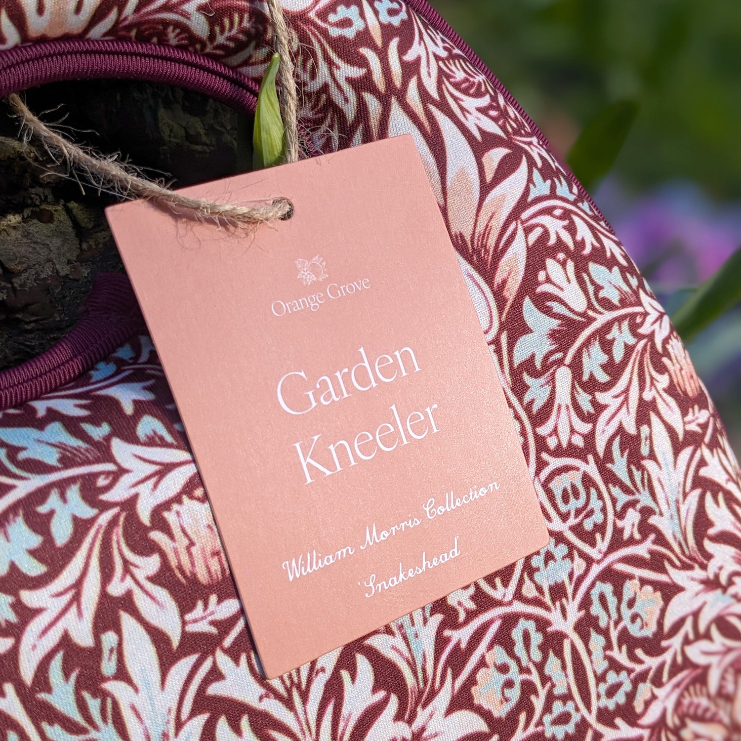 WILLIAM MORRIS PRINT: This stylish Garden Kneeler is designed in the UK and printed with the gorgeous William Morris Snakeshead pattern which was originally designed in 1876.