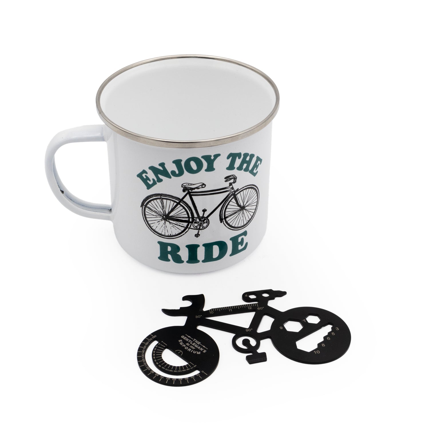 GREAT GIFT FOR CYCLISTS: The stylishly designed enamel mug and handy bike multi-tool make this the perfect gift for cycling enthusiasts and outdoor adventurers.