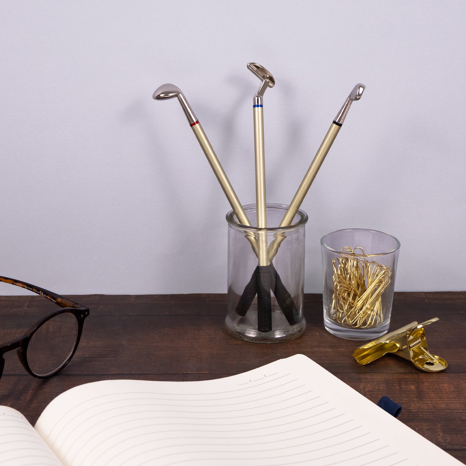 SET OF 3 PENS: These golf club pens are perfect for any golf enthusiast. The set includes ballpoint pens with red, blue and black ink.