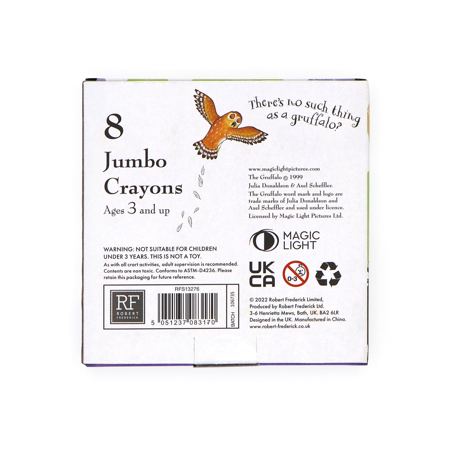 LET’S GET COLOURING: Let your child’s imagination run free and see what they can create with this fun set of Gruffalo jumbo crayons. The pack includes 8 different colour crayons: red, purple, brown, orange, yellow, black, blue and green.