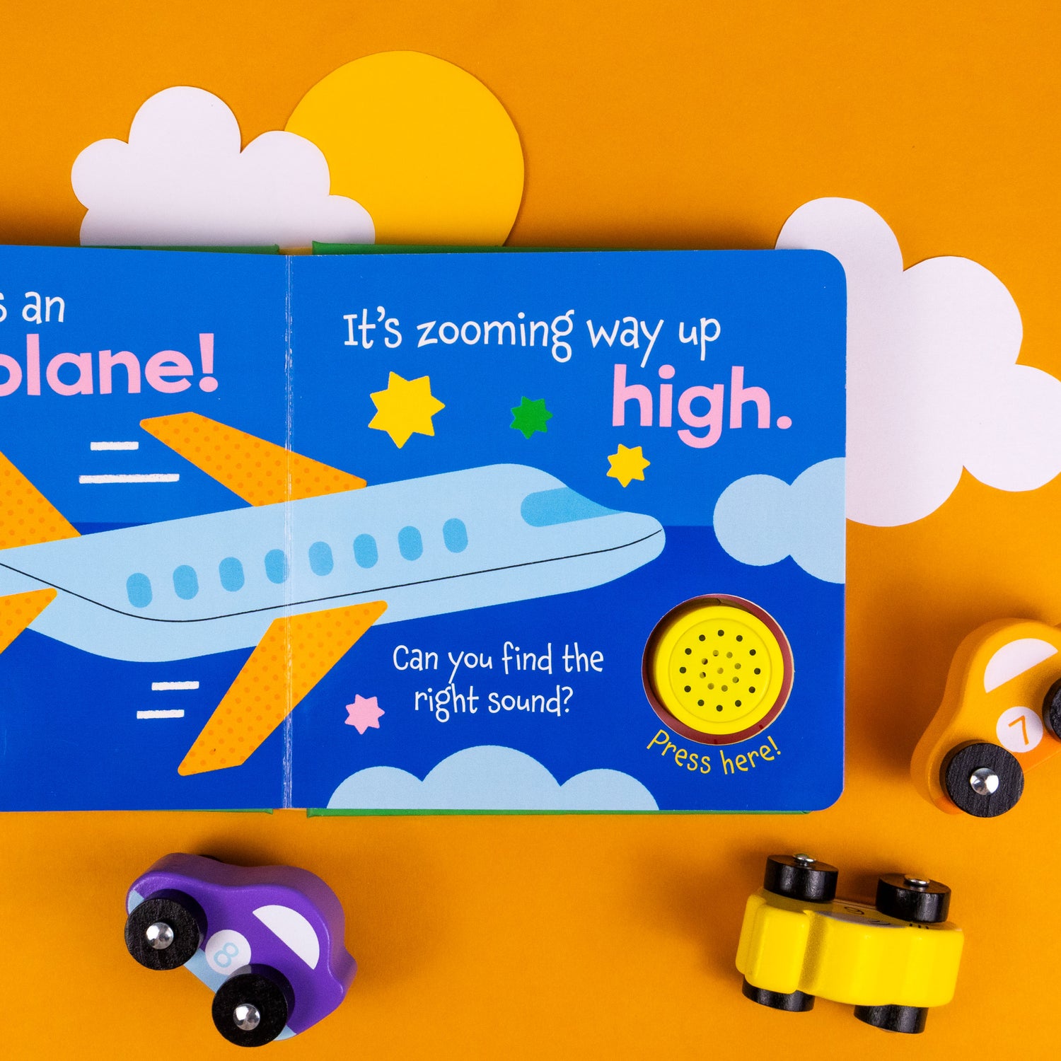 These colourful vehicles make all kinds of noises! Press the button to find the sound that matches the vehicle on each page.