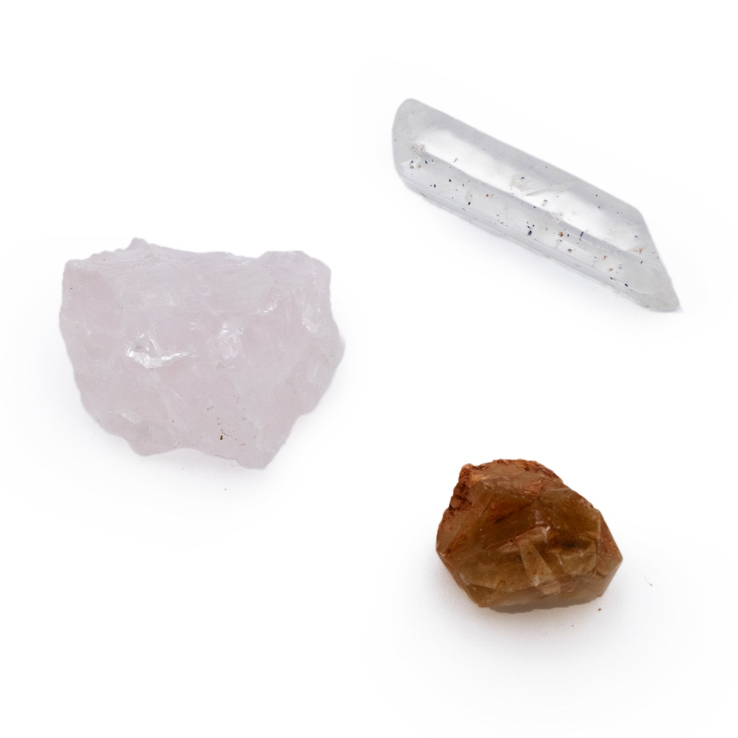 CRYSTAL MEANINGS: Clear Quartz is known as the power stone and is a universal crystal which can be used to enhance energy. Rose Quartz attracts love energies and is used for kindness, friendships, and self-love as its focus is on comforting and soothing. Citrine attracts prosperity whilst balancing emotions, bringing wealth and a clear mind.
