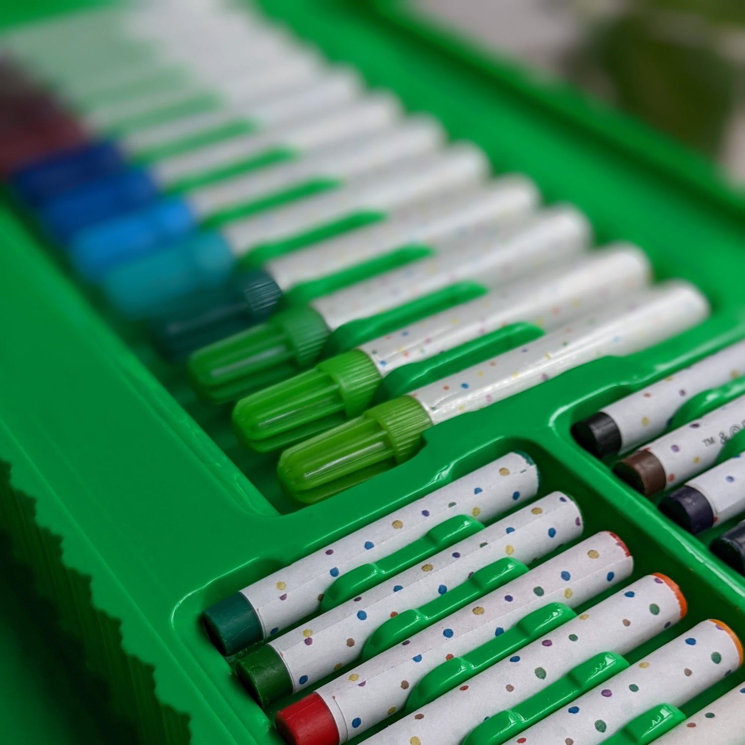 WHAT’S INCLUDED IN THE SET: The mixed art set includes 24 colouring pens, 12 colouring pencils, 12 paints, 1 mixing palette, 1 paint brush, 12 oil pastels, 12 crayons, 1 pencil, 1 eraser, 1 sharpener, 1 tube of glue, 1 mini stapler, 1 pair of scissors, 1 ruler and 6 paper clips.