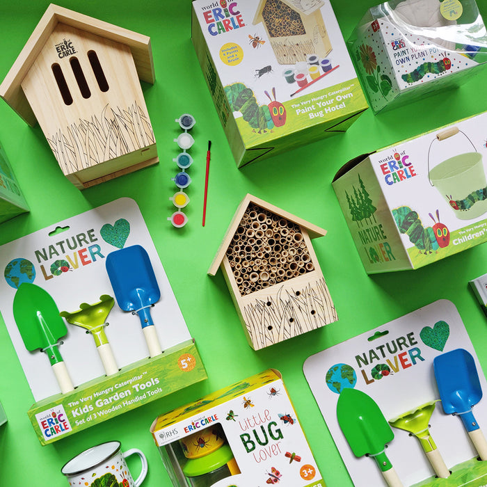Inspired by The Very Hungry Caterpillar and his friends, this colourful range includes children’s garden tools, magnifying bug catchers, and creative wooden craft kits to paint and decorate, from butterfly houses to bug hotels.