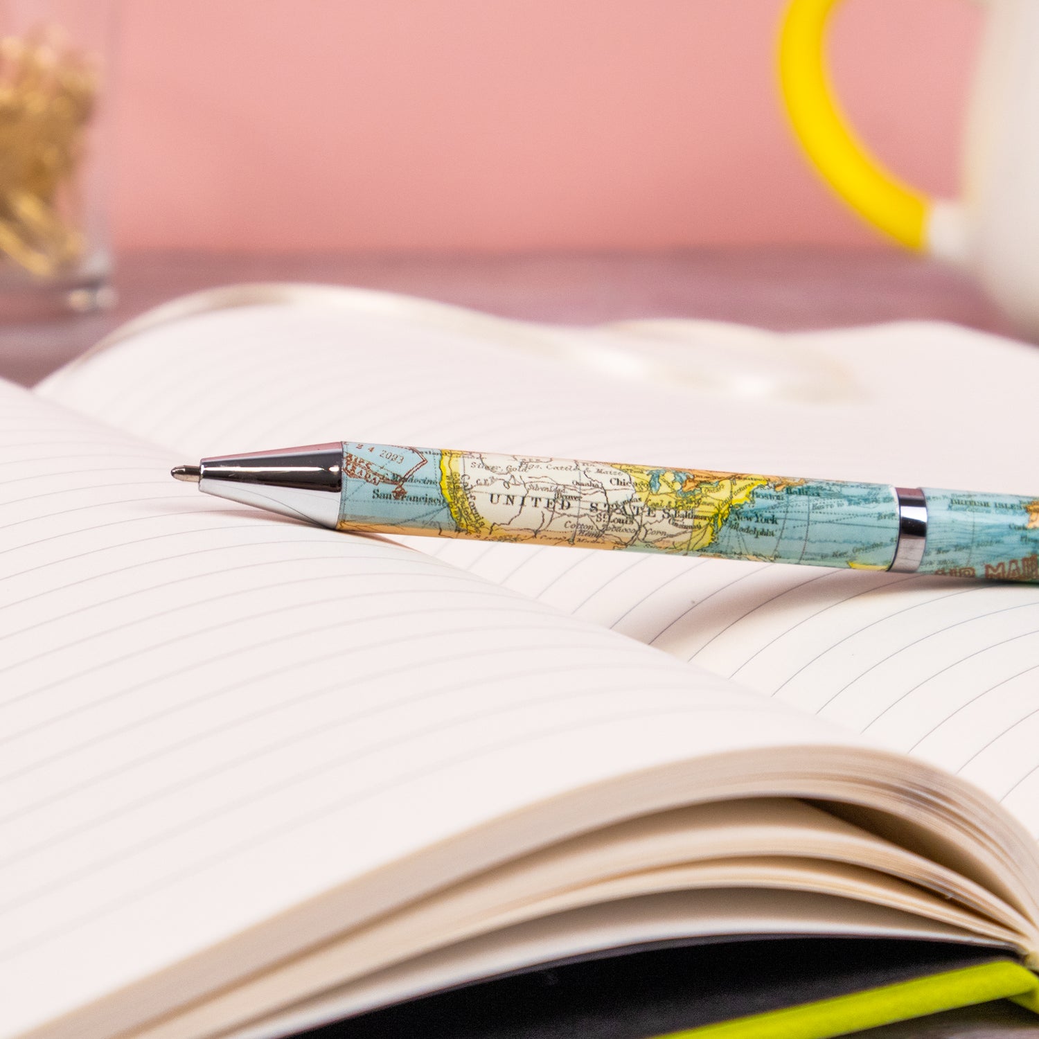 VINTAGE MAP DESIGN: This elegant pen features a classic world map design, it’s the perfect choice for travel lovers, writers, and stationery enthusiasts.