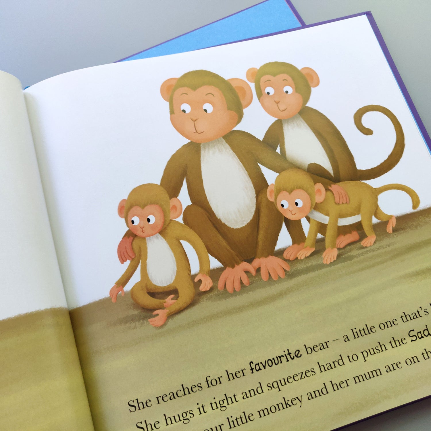 Little Monkey already feels sad at having to spend a day without her mummy. But then she loses her favourite teddy, and her sadness grows even bigger!